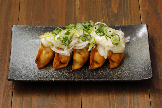 キムチ入り揚げ餃子にタルタルと甘酢をかけ南蛮風にしました。復刻!! -